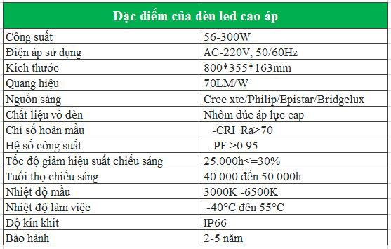 - Sử dụng bóng đèn led cao áp tiêu thụ điện năng thấp do vậy tiết kiệm năng lượng đáng kể, là giải pháp chiếu sáng thay thế đèn cao áp metal halide, đèn cao áp sodium, đèn cao áp thủy ngân truyền thống.