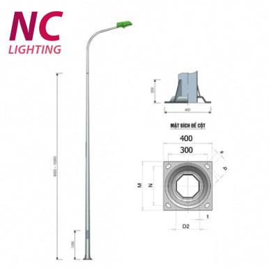 - Cột đèn cao áp gồm 2 phần: phần thân và phần đế cột.