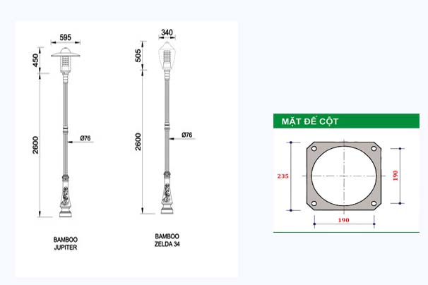 THÔNG SỐ KỸ THUẬT CỘT ĐÈN SÂN VƯỜN BAMBO