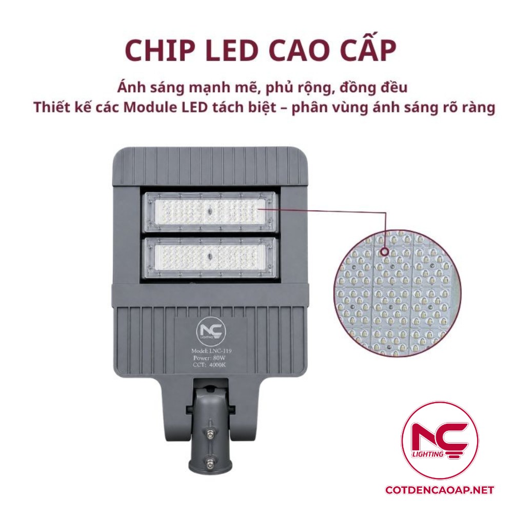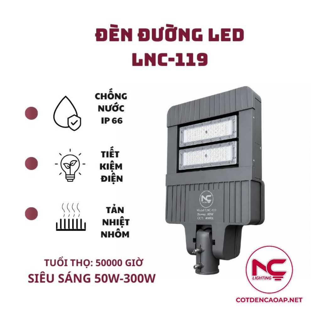 Sản phẩm nằm trong nhóm đèn LED cao áp trên website NC Lighting, cùng phân khúc với nhiều mẫu đèn đường khác của doanh nghiệp. Điều này cho thấy LNC-119 được định hướng cho nhu cầu chiếu sáng công cộng và chiếu sáng công trình ngoài trời, phù hợp với chủ đầu tư, đơn vị thi công cơ điện và các dự án cần hệ thống chiếu sáng đồng bộ.
