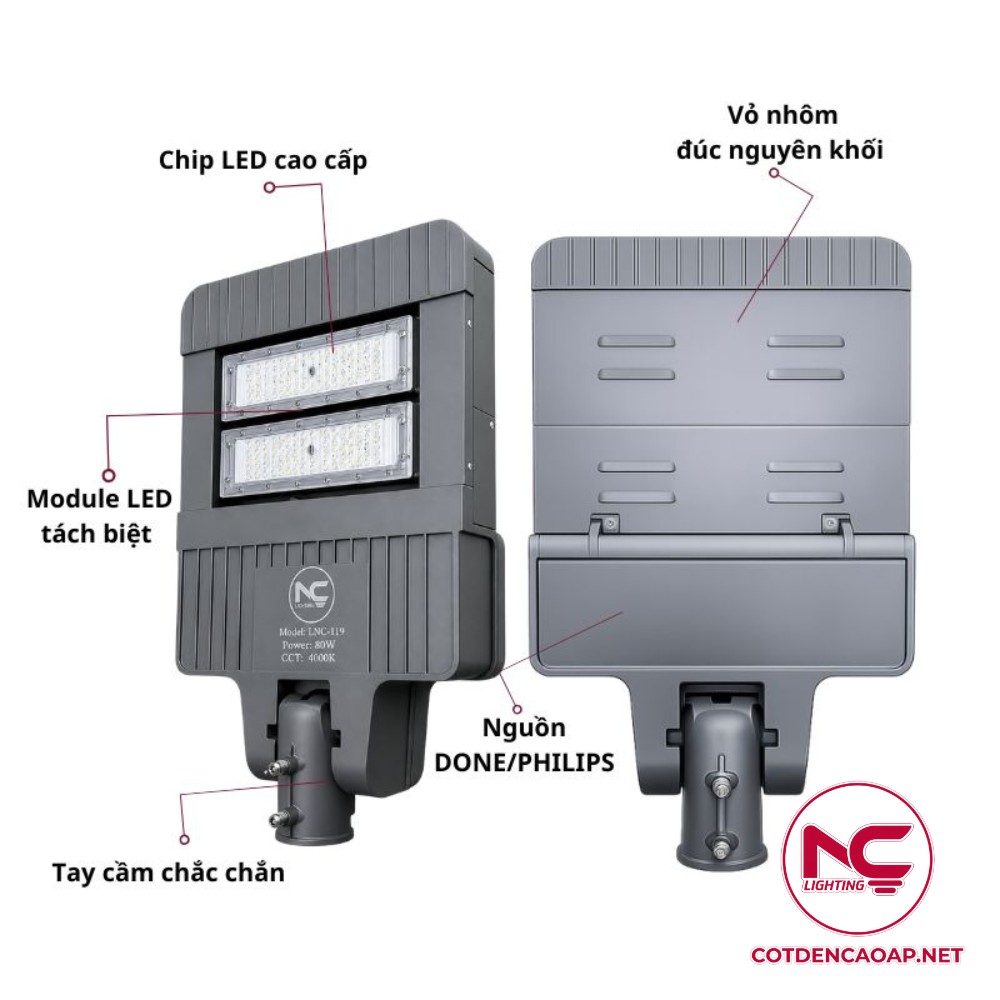 Đèn đường LED cao áp LNC-119 là dòng đèn chiếu sáng ngoài trời phù hợp cho đường giao thông, khu dân cư, đường nội bộ, khu công nghiệp, nhà máy và bãi xe. Sản phẩm thuộc danh mục đèn LED cao áp của NC Lighting, phù hợp để triển khai cho các công trình cần giải pháp chiếu sáng ổn định, bền bỉ và đồng bộ.