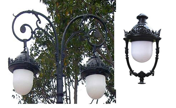 - Đế đèn và các hoa văn trang trí được làm bằng nhôm đúc, chịu được va đập, không bị oxi hóa bởi những biến đổi của thời tiết, phần chụp trên của đèn trang trí sân vườn nữ hoàng được làm bằng tôn dập sơn tĩnh điện.