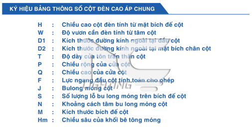 Thông số kỹ thuật trụ đèn cao áp mạ kẽm NC07